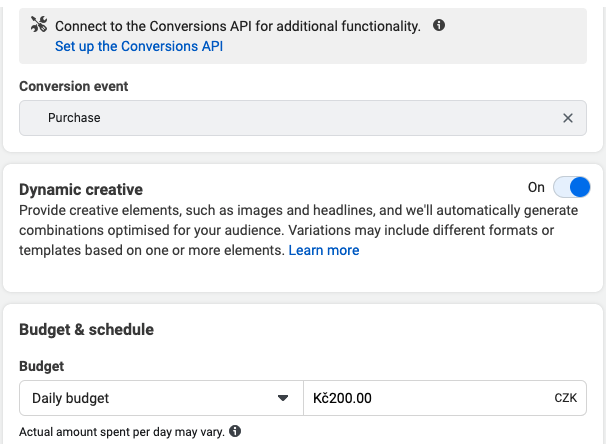 Je potrebné poznamenať, že dynamická kreatíva sa líši od možnosti „Optimalizovať kreatívu pre každú osobu“. Keď zvolíte druhú možnosť, Facebook doladí použité kreatívne prvky, napríklad vytváranie zrkadlových obrázkov alebo thumbnailov alebo zmena poradia carousel reklám. Dynamická kreatíva zmení celú reklamu a optimalizuje každý prvok tak, aby dosahoval čo najlepšiu výkonnosť. Tieto funkcie je možné používať spoločne.