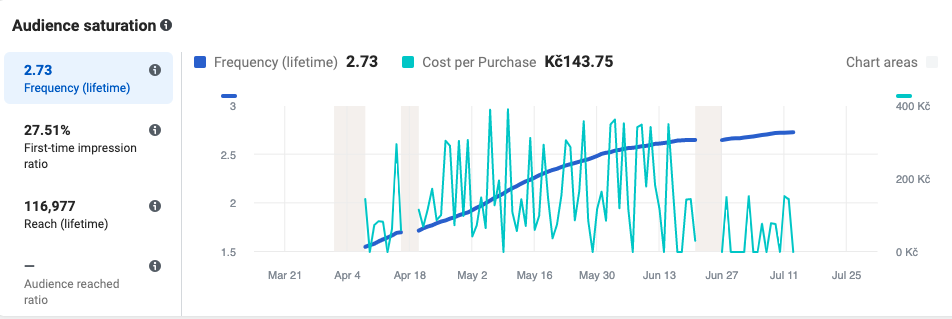 Pre lepšiu identifikáciu, kde únava reklamy začína, je ideálne zadať celkové obdobie reklamy, za ktoré bola spustená. Graf nám poskytne krásny náhľad pre pochopenie vzniku problému.