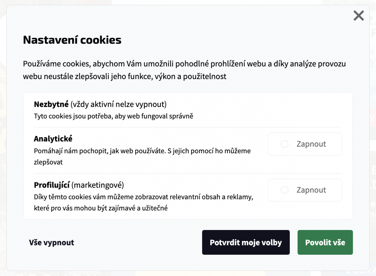 Nabízelo by se tedy schovat tlačítko na odmítnutí. Pak se vám však může stát, že vás bude kontaktovat UOOU (úřad pro ochranu osobních údajů) s doporučením zobrazovat obě tlačítka najednou, jak se již jednomu z klientů Shoptet stalo.