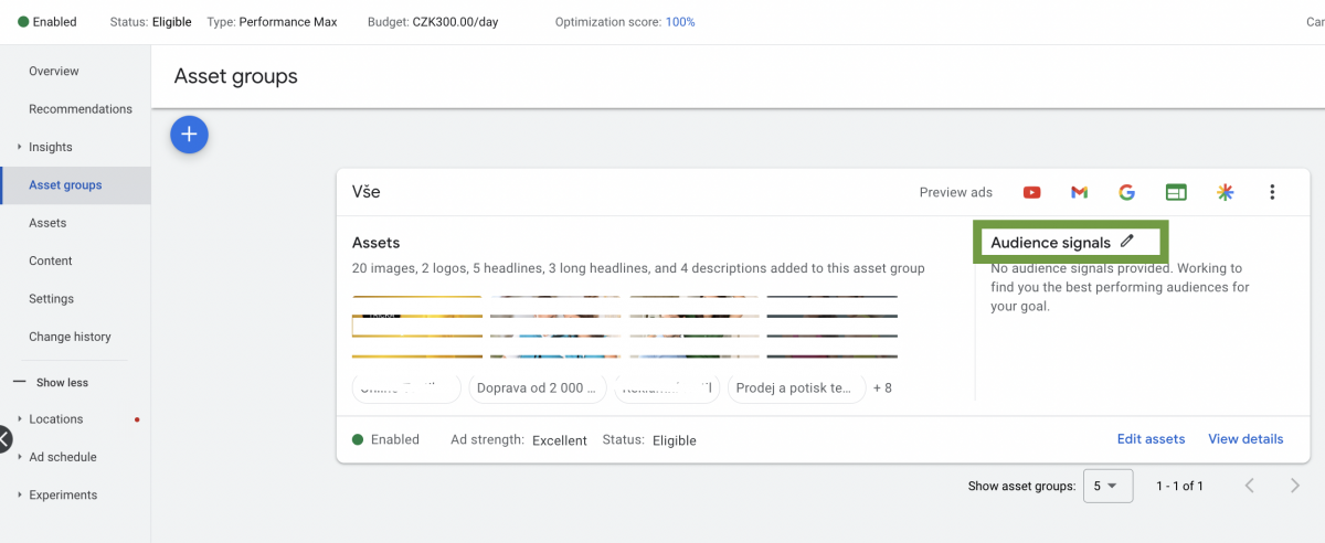 10. Signály přidejte pomocí zájmů, demografie, vlastních first party-data a také je vhodné vytvořit vlastní publika se svými klíčovými slovy.