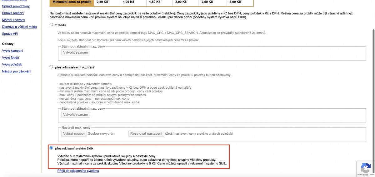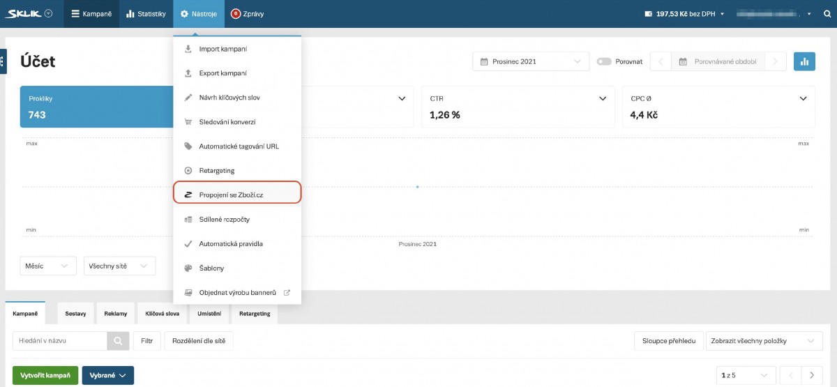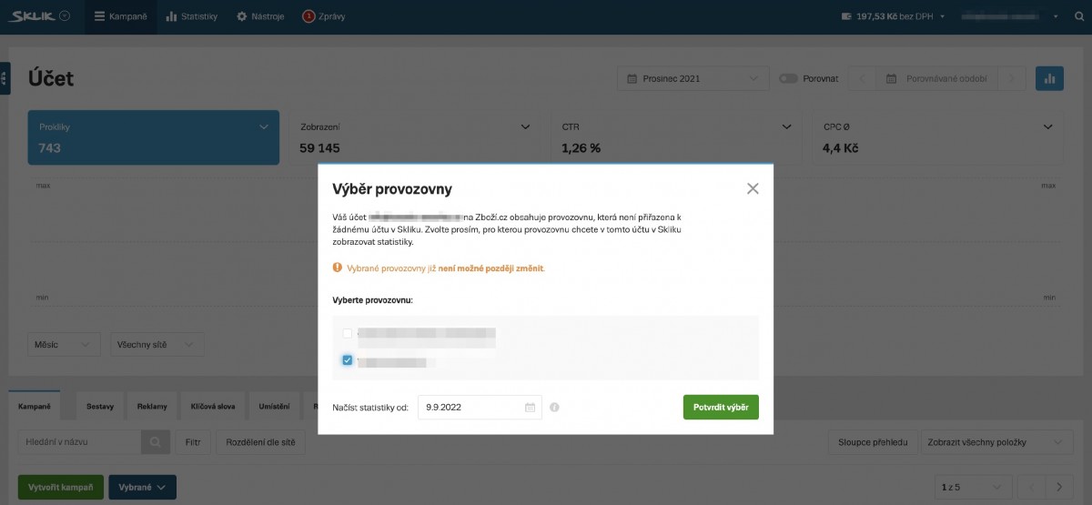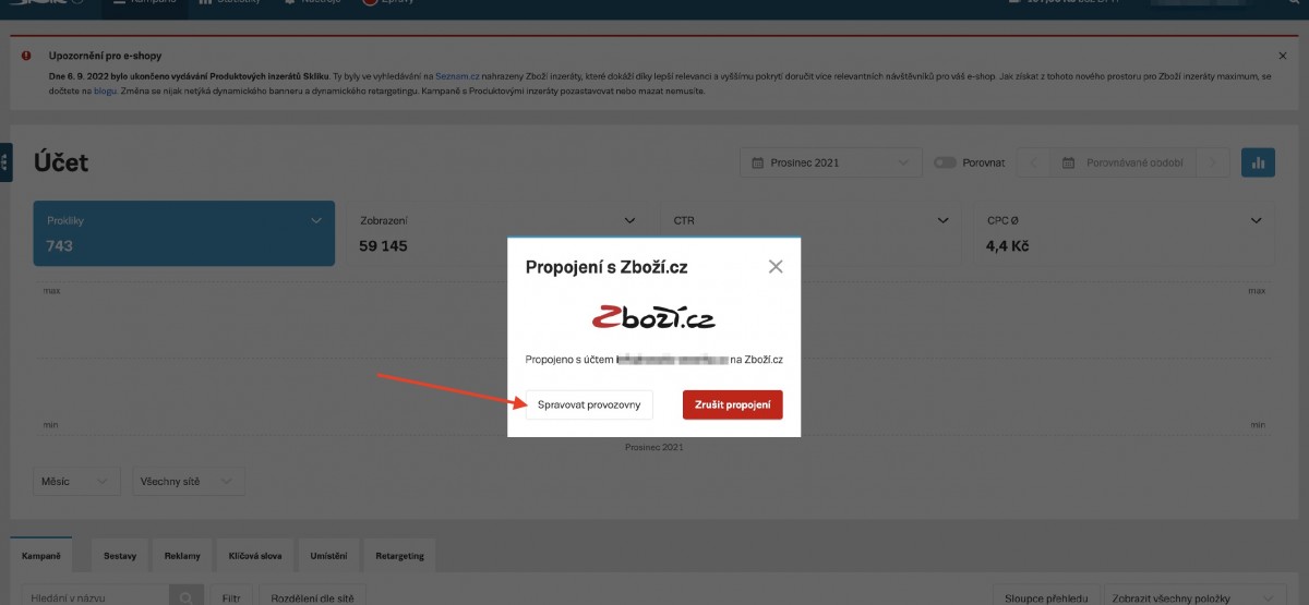 Abychom mohli provádět administraci kampaní přímo z rozhraní Skliku, musíme ještě propojit statistiky zvolené provozovny se Zboží.cz. Postup je následovný:
