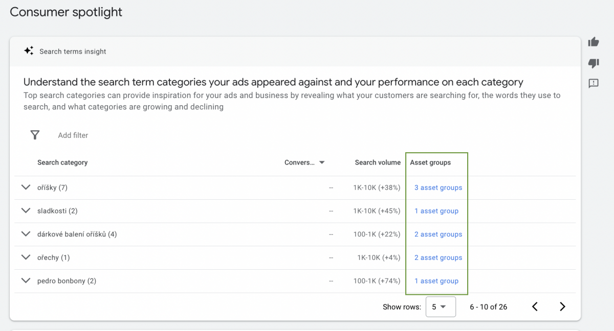Většina z nás nakonec skončí s rozdělenými performance max. Ať už chceme nebo ne. Ať už začneme s rozděleným a nebo nás k tomu dokope výkon kampaně “vše v jednom pytli”. Respektive to, že “vše v jednom” kampaň zobrazuje jen určité produkty a třeba 50 nebo i 80 % produktů se vám nezobrazuje.