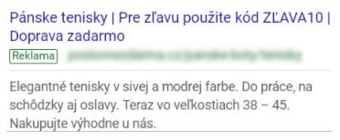 V případě, že bude splněna podmínka a reklama se zobrazí uživateli, který je zahrnutý v našem cílovém publiku, text reklamy bude obsahovat frázi se slevou.