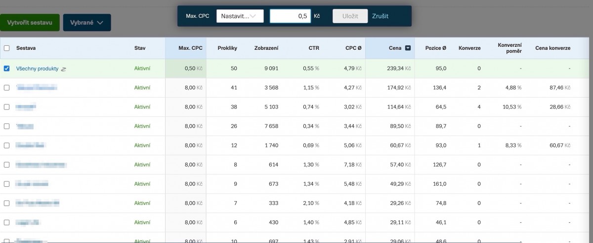 Produkty v nových zostavách majú síce prednosť zobrazovania, ale nemožno vylúčiť, že sa zobrazia aj z tej pôvodnej zostavy. Dá sa to však obmedziť. A to jednoducho tak, že znížite CPC pri pôvodnej zostave na minimum.